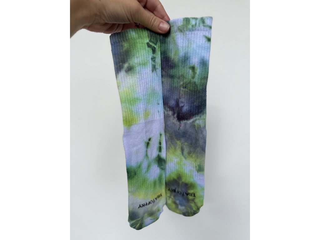 Batikované ponožky jsou barveny mnou a to práškovými barvami Jacquard Procion (netoxická barva) studenou metodou na bázi chemické reakce. Aktualni barvy na fotkach - ruzove, svetlejsi galaxie a tmavsi galaxie :)