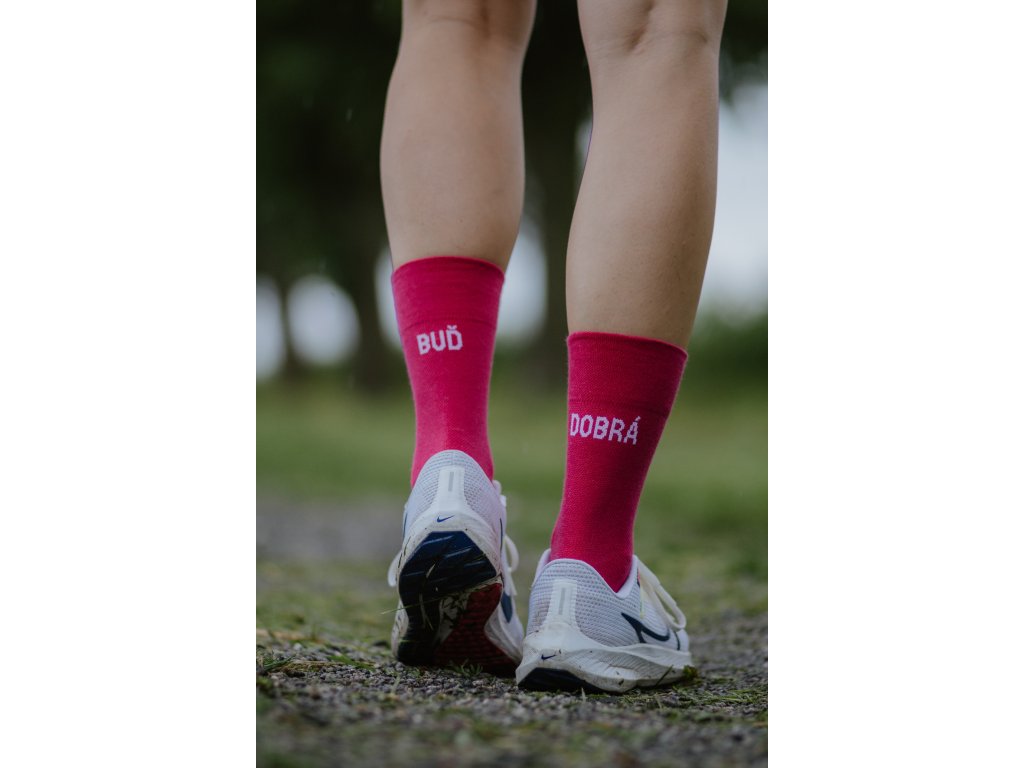 Barevné merino ponožky s měkoučkým chodidlem pro parádní tlumení a pohodlí. S pružným tělem se širokým lemem pro komfort tvého kotníku a lýtka. Podrží ti nohu bez problému celý den v akci, pohodlí a zároveň se skvělým motem a barvou v patách! 80% merino vlna, zbytek elastan pro prižnost. Vyrobeno v ČR.