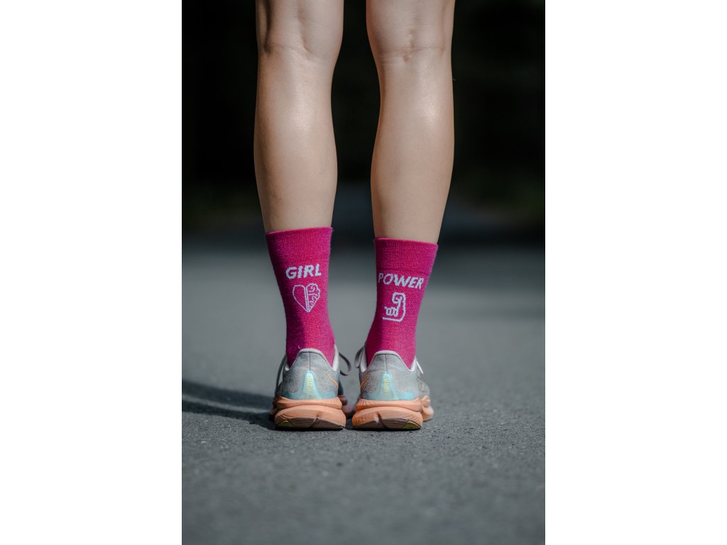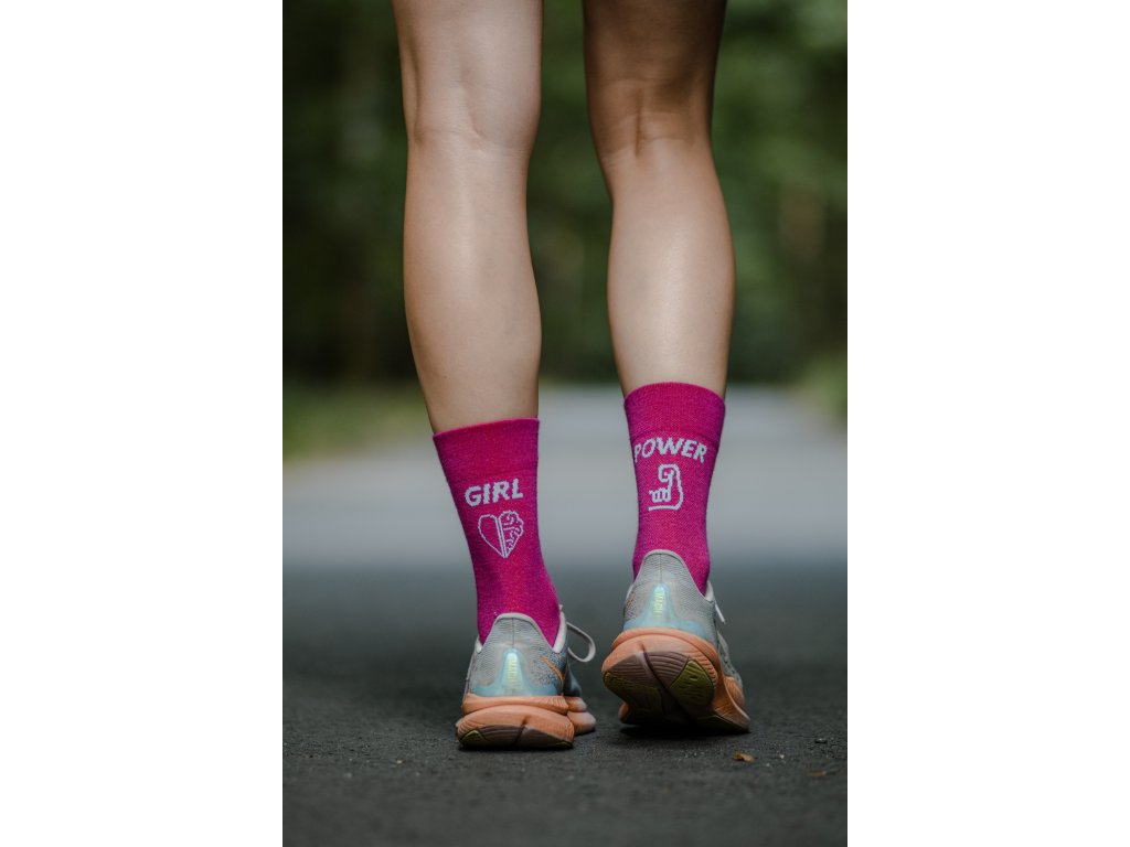 Jsi skvělá! Tvoje jedinečnost, nezávislost, sebevědomí a síla je GIRL POWER :-) Barevné merino sportovní ponožky na běh, kolo i turistické výlety s nápisem GIRL POWER. Funkční provedení a antibakteriální materiál ponožek.