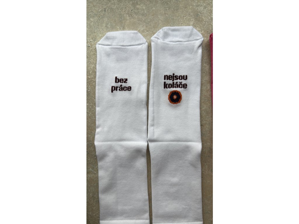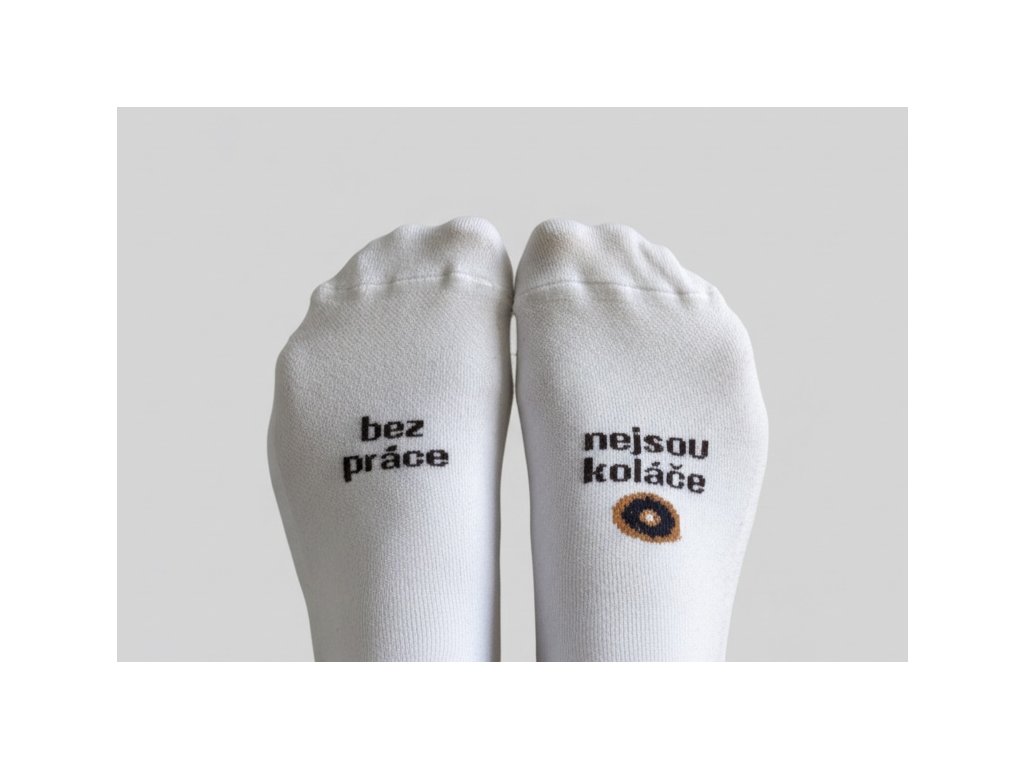 Málokdy jsou v životě dobré věci jednoduché! Ale my se nebojíme zabrat a víme, že bez práce nejsou koláče :-) někdy chutná dobře oboje! A't už makáme na zdolání kilometrů, kopců nebo sami na sobě! Motto BEZ PRÁCE NEJSOU KOLÁČE zdobí Traťoffky na nártu, takže tohle motto uvidíš vždy, když si ponožky natáhneš a koukneš se dolů. Je to zpráva pro tebe, abys šla/šel za svými sny!