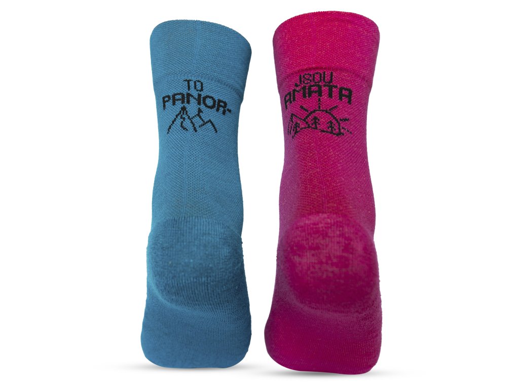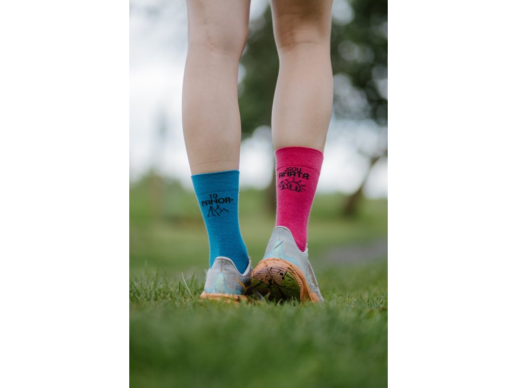 Barevné merino ponožky s měkoučkým chodidlem pro tlumení a pohodlí a pružným tělem se širokým lemem pro pohodlí tvého kotníku a lýtka. Podrží ti nohu bez problému celý den v akci, pohodlí a zároveň s veselým motem nebo barvou v patách!