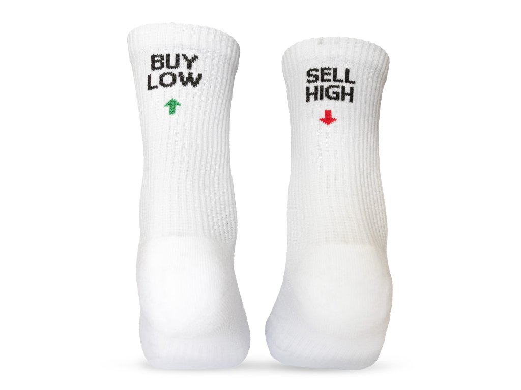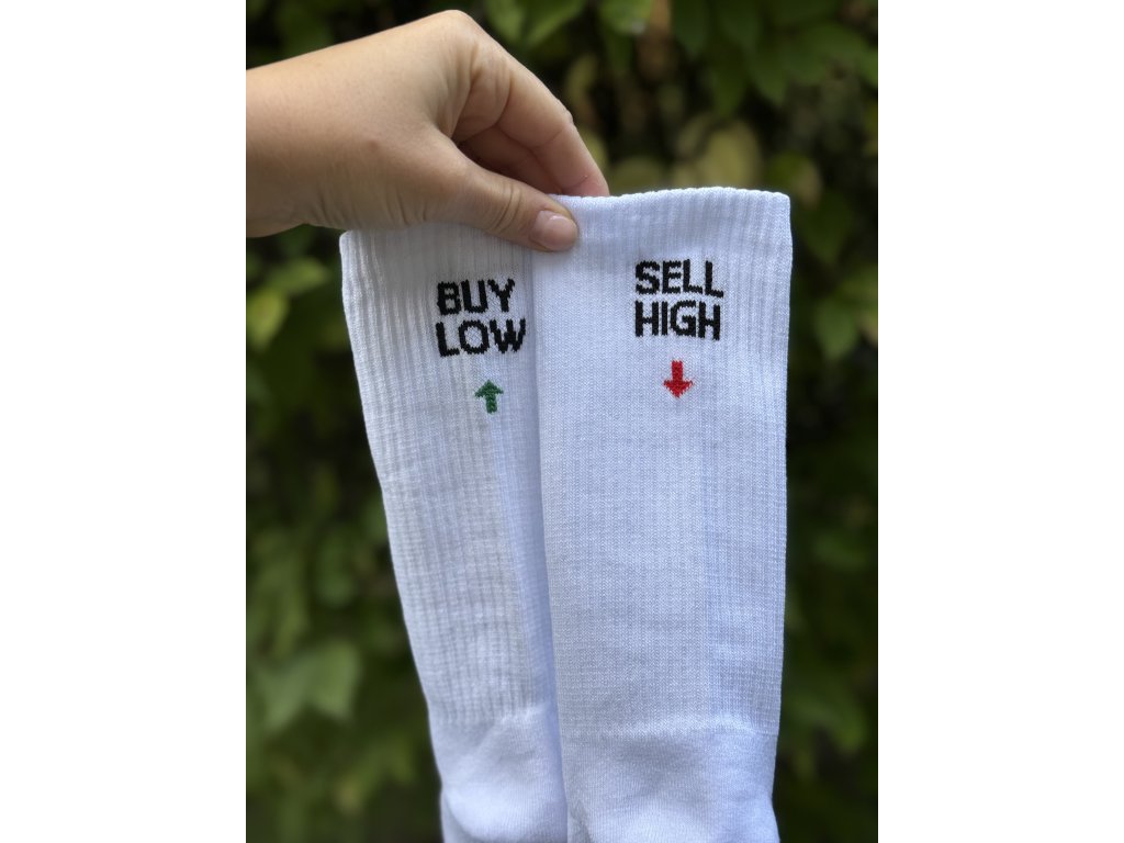 Obchodujete, trejdujete, spekulujete ? Nebo váš blízký? Při pokusech stát se rentiéry ve 35 jsou tu tyhle ponožky s mottem BUY LOW, SELL HIGH a vzkazem ve špičce! :-)