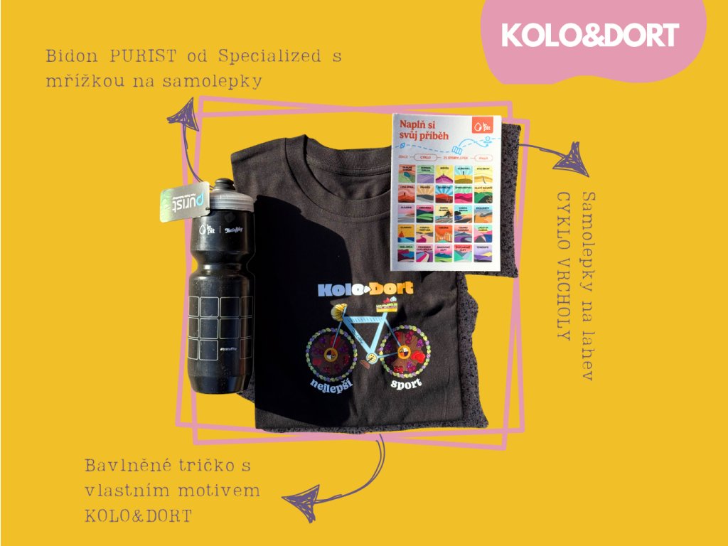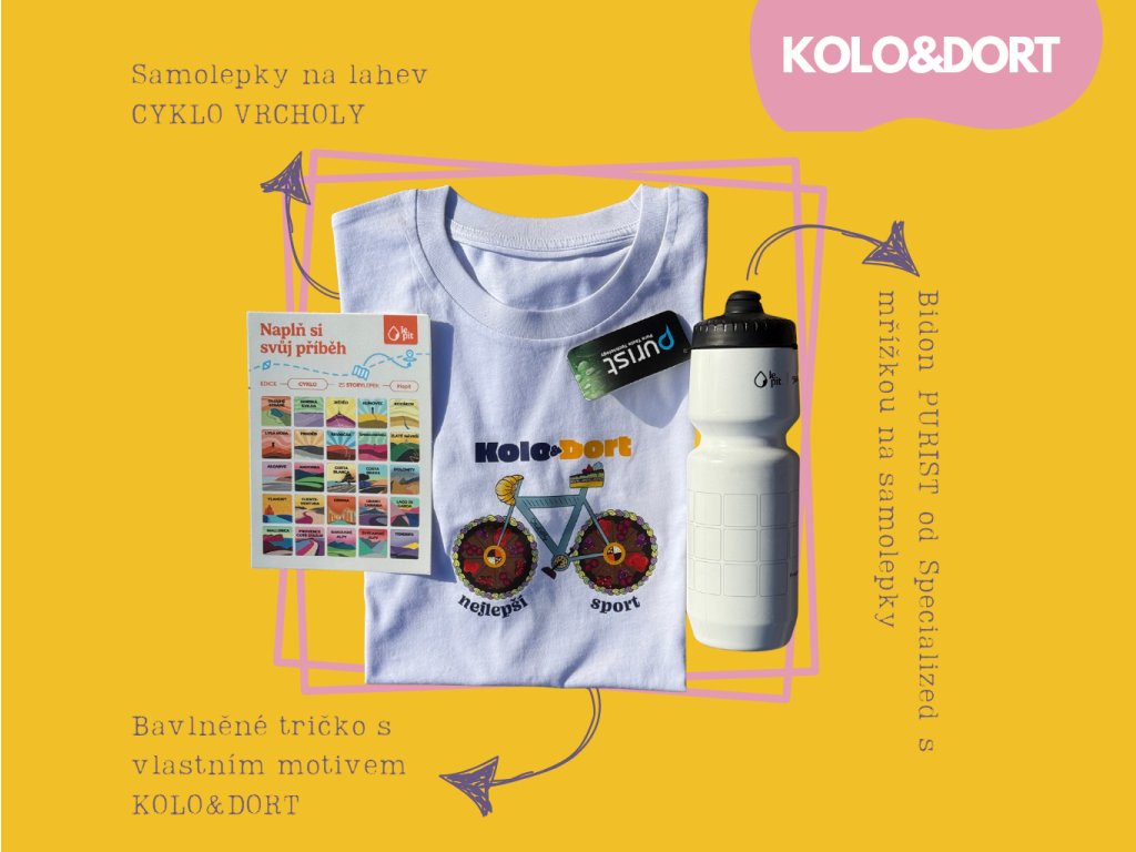 Sada bavlněného trička, bidonu Purist a našich samolepek s cyklo místy na polepení bidonu. Dárková sada pro cyklisty s naší autorskou tvorbou!