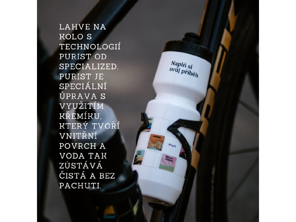 Láhev Specialized Purist nabízí špičkovou kvalitu lahve. Díky speciální povrchové úpravě z amorfního oxidu křemičitého má vnitřní stěna lahve povrch jako sklo, který udržuje vodu čistou a čerstvou. Tato jedinečná technologie zabraňuje vzniku pachů, skvrn a plísní, takže vaše voda zůstává chutná a čistá bez pachuti.