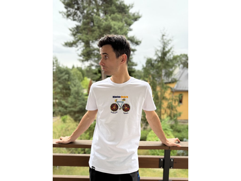 Tričko má klasický unisex střih, je ušité z kvalitní organické bavlny, a hodí se na kolo, kafe i gauč. Pohodlné, vtipné, nápadité – přesně ve stylu Traťoffky.