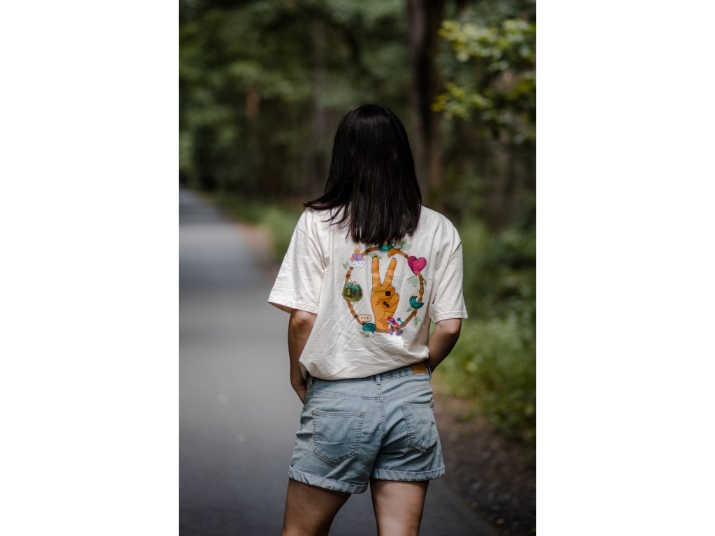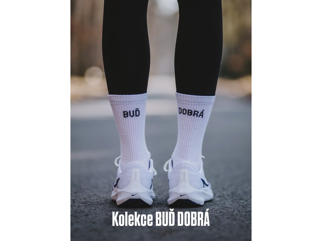 Ponožky BUĎ DOBRÁ jsou ve velikosti S-M (jiné ani nemáme). Tričko vybírej o 1 až 2 velikosti menší. Je unisex a ještě oversized! Hrneček vyrobila Káťa z ERITY.