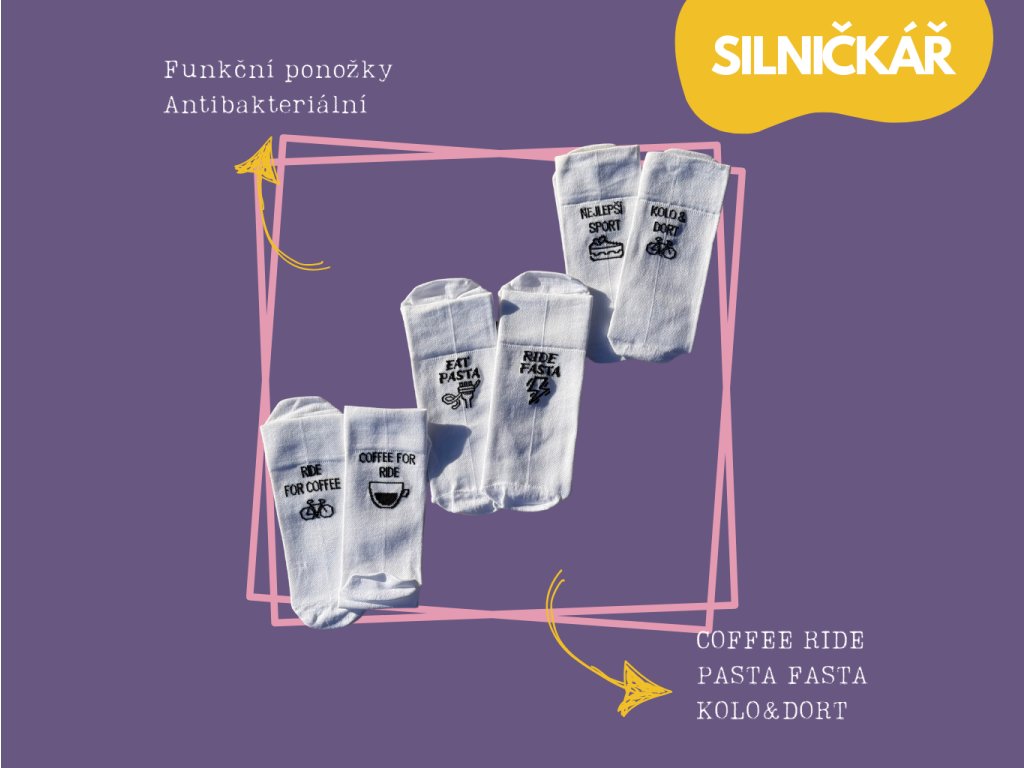 Set 3 funkčních ponožek na cyklistiku. Antibakteriální, pohodlné a originální ponožky na kolo. Ideální jako dárek pro cyklisty.