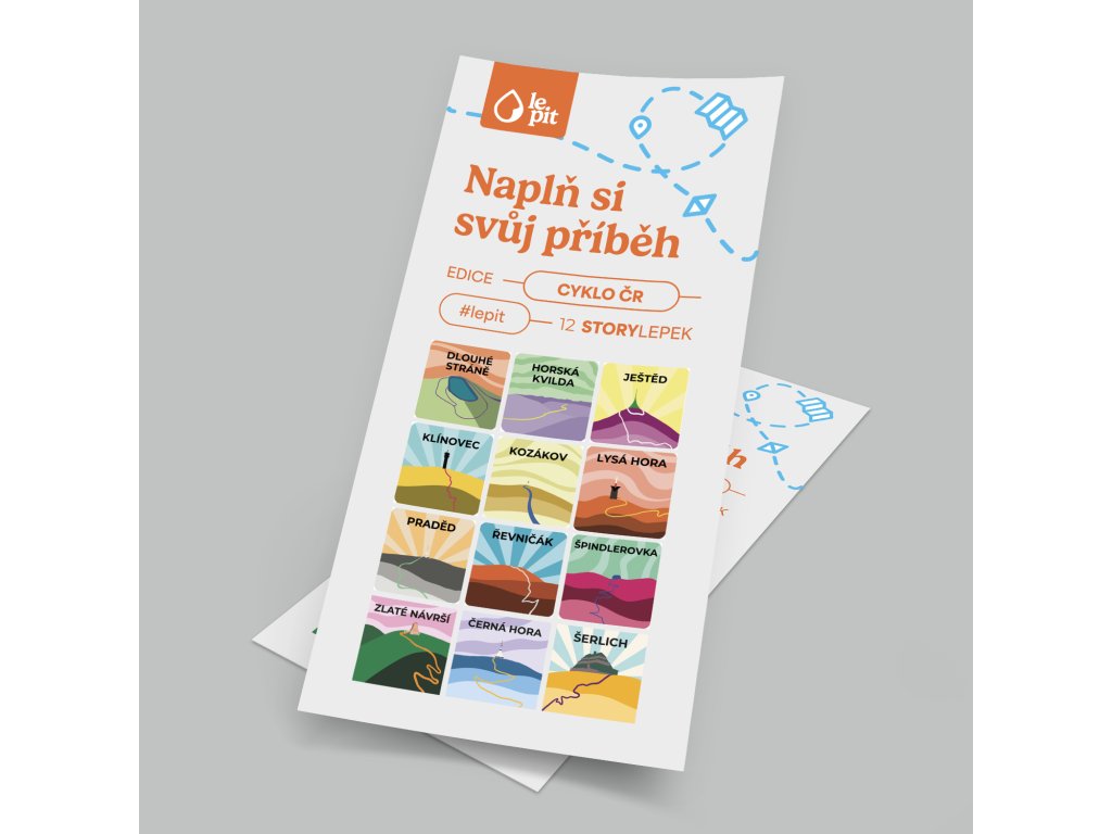 Autorské speciálně odolné samolepky na lahve s oblíbenými cyklo vrcholy v ČR! Naplň svůj příběh TOP 12 vrcholy, které si u nás stojí za to u nás vyšlápnout! Storylepky od Lepit! Tahle sada je pro opravdové milovníky cyklistiky!