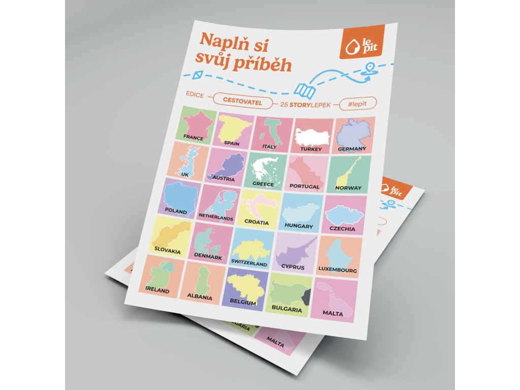 Sada samolepek na lahev lepit se storylepkami procestovaných zemí v Evropě. Samolepky pro nalepení na tvoji lahev a zaznamenání zážitků a procestovaných zemí. Odolné, autorské kresby. Každá země je ztvárněná v pastelových barvách. Ideální pro cestovatele, kteří chtějí mít své oblíbené destinace stále na očích.