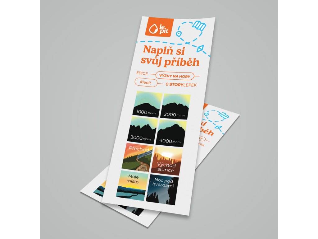 Samolepky na lahev od lepit na téma VÝZVY NA HORY. Pokud hory miluješ nebo jim přicházíš na chuť a máš srdce dobrodruha, bude tahle mini sada skvěle doplňovat tvoji polepenou lahev. Jde o 8 výzev - 4 milníky hor a 4 zážitky.