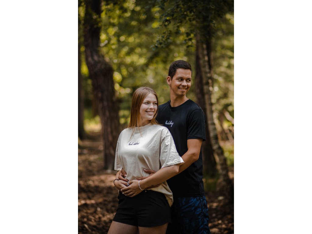 Minimalistický ručně psaný nápis na hrudi vypadá skvěle na obou variantách – černé i bílé. Žádné zbytečnosti. Jen čistý střih, kvalitní látka a jednoduchý statement, který má styl.