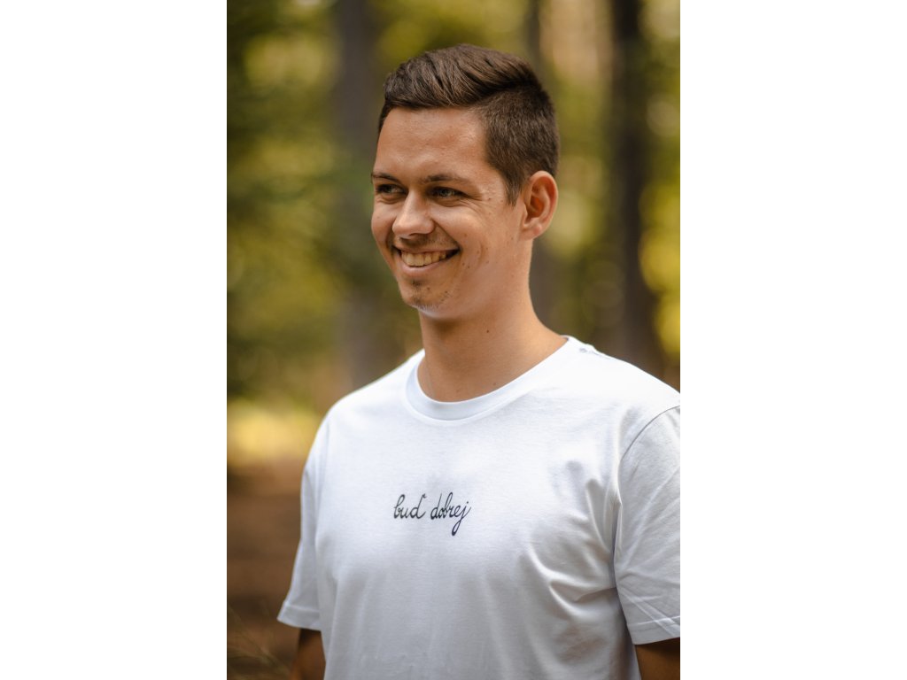 Tričko BUĎ DOBREJ – minimalistický unisex styl, organická bavlna, pohodlný střih, potisk z české dílny.